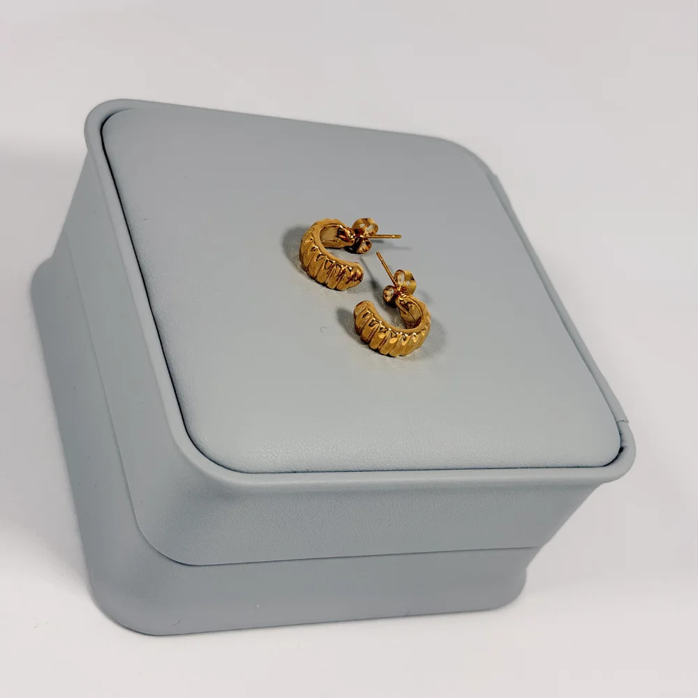 Aretes Candonga Croissant Dorada | Colección Essenza | Oro Laminado 18K