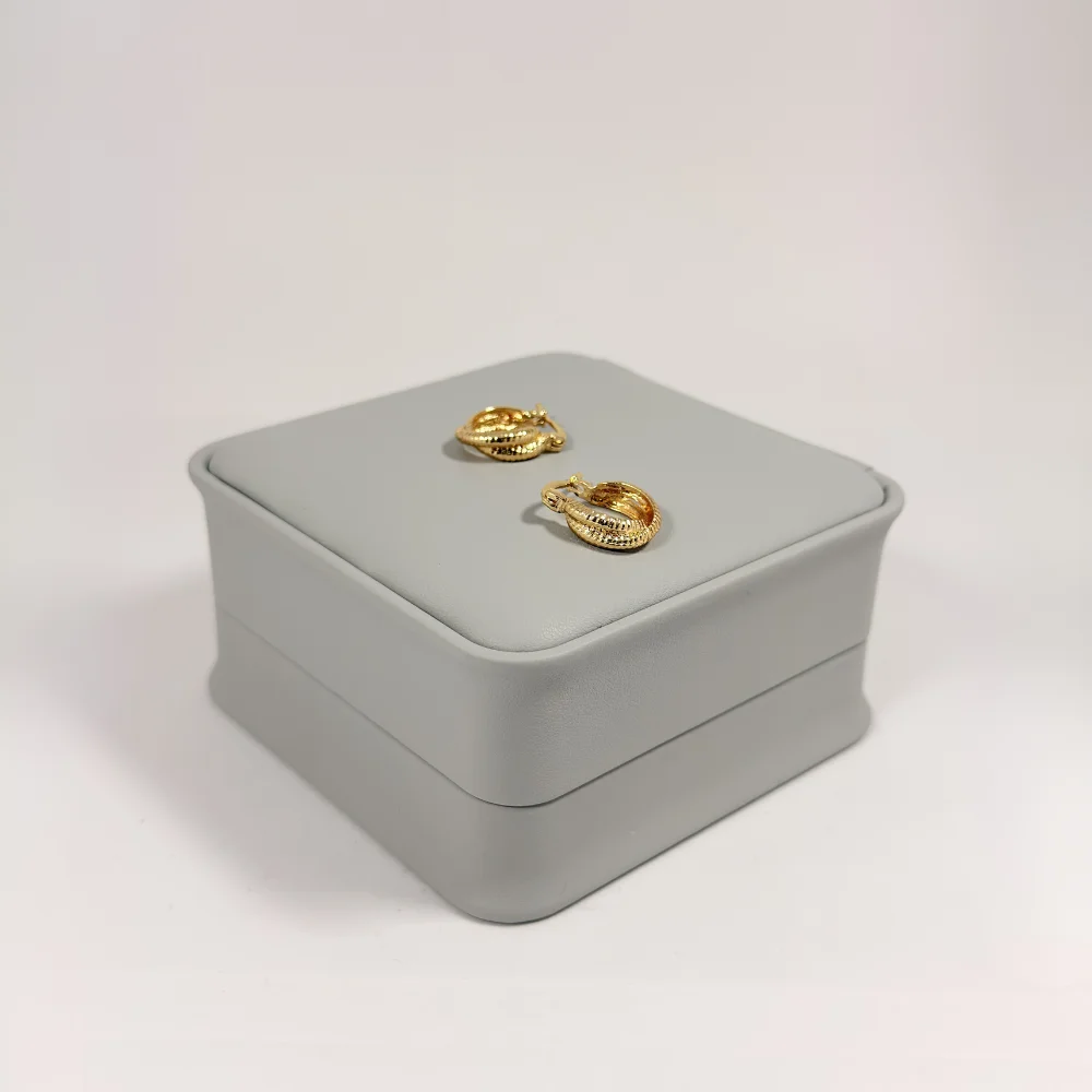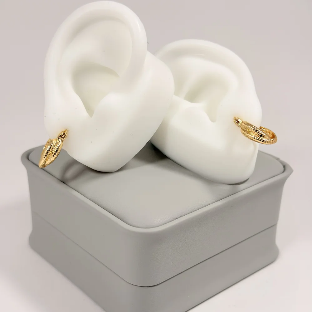 Los Aretes Candonga Mini Doble Banda Dorada de nuestra Colección Cerchio están elaborados en oro laminado 18K garantizado. Su diseño presenta dos bandas entrelazadas — una lisa espejo y una estriada texturizada — que se cruzan y abrazan el lóbulo creando un efecto de volumen y contraste de texturas en un tamaño compacto. El juego entre lo liso y lo texturizado le da profundidad visual y un nivel de detalle que sorprende de cerca. Perfectas para el día a día o como segundo arete.