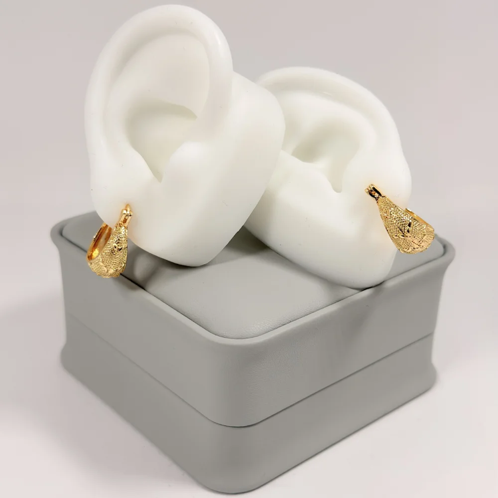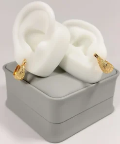 Aretes Candonga Mini Gota Granulada Dorada en Oro Laminado 18K | Colección Cerchio | Dorado con Textura Granulada