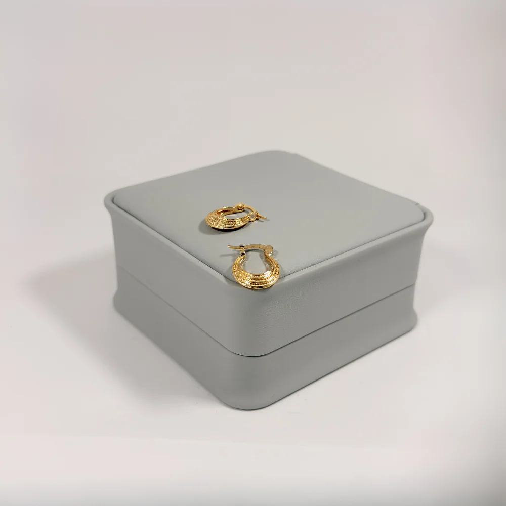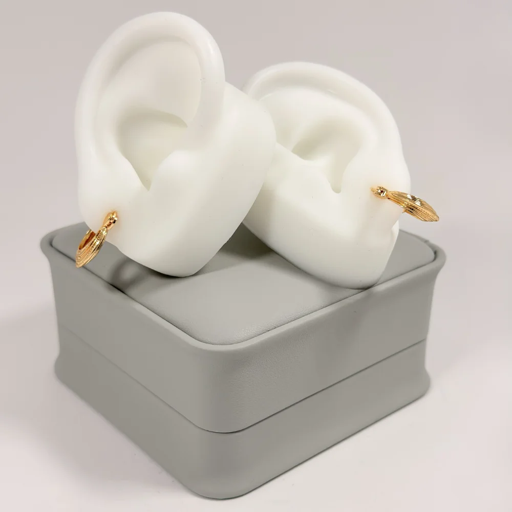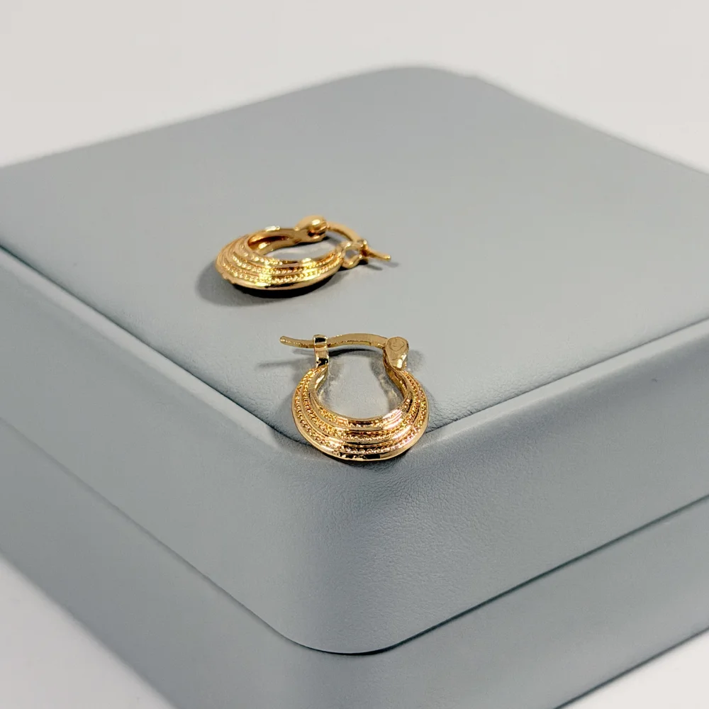 Aretes Candonga Mini Luna Escalonada Dorada en Oro Laminado 18K | Colección Cerchio | Dorado con Textura Escalonada