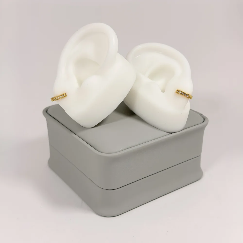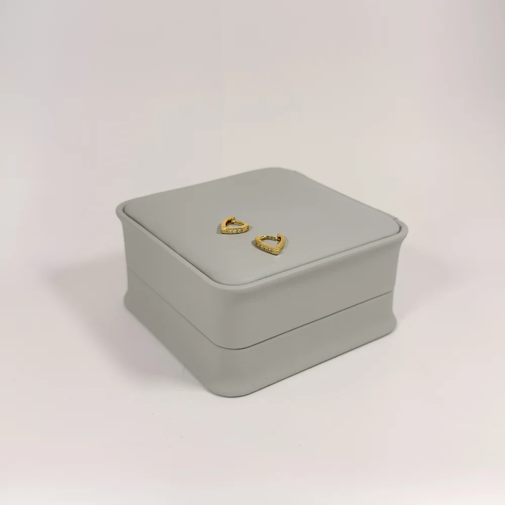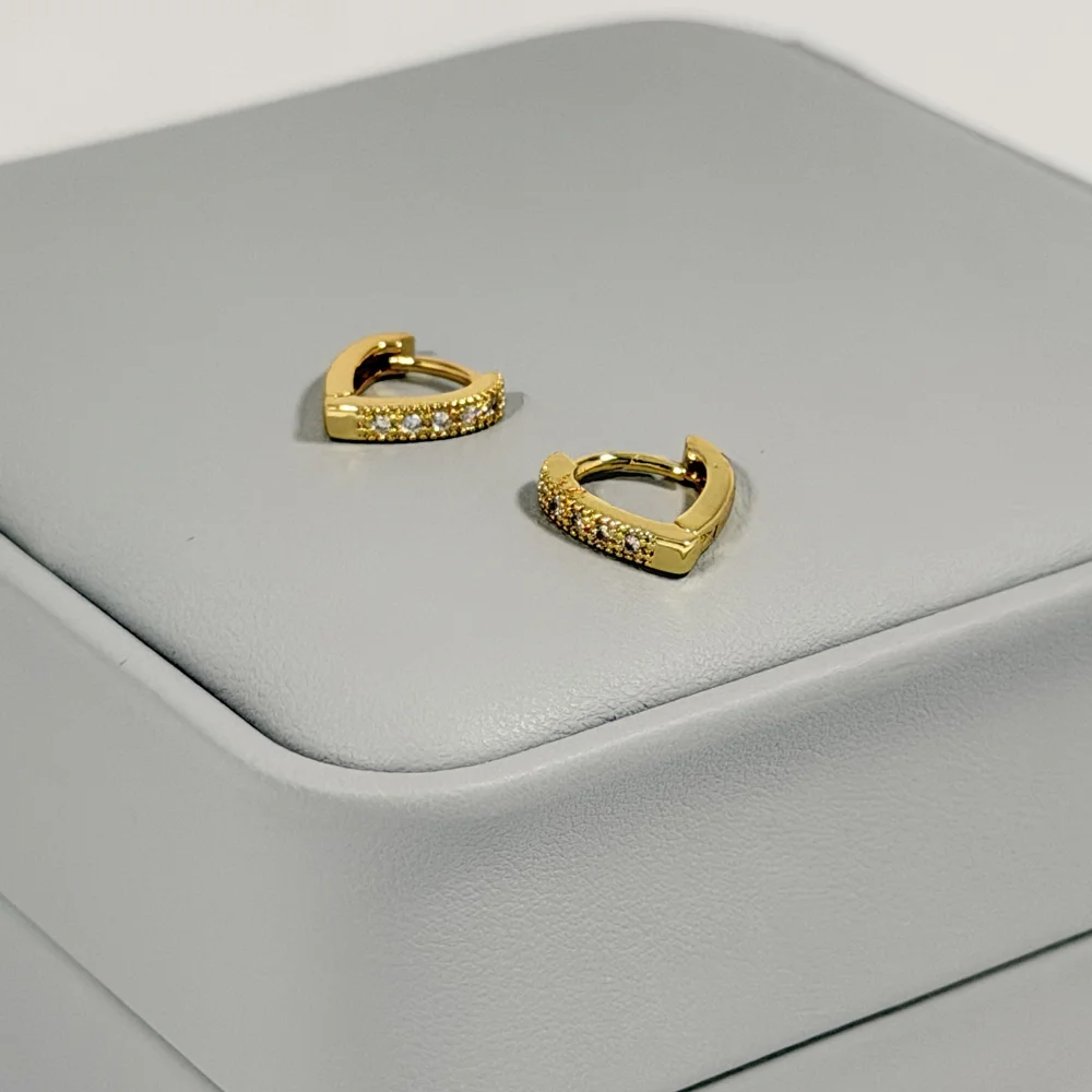Aretes Huggie Corazón Circones Blancos Dorado | Colección Chiuso | Oro Laminado 18K