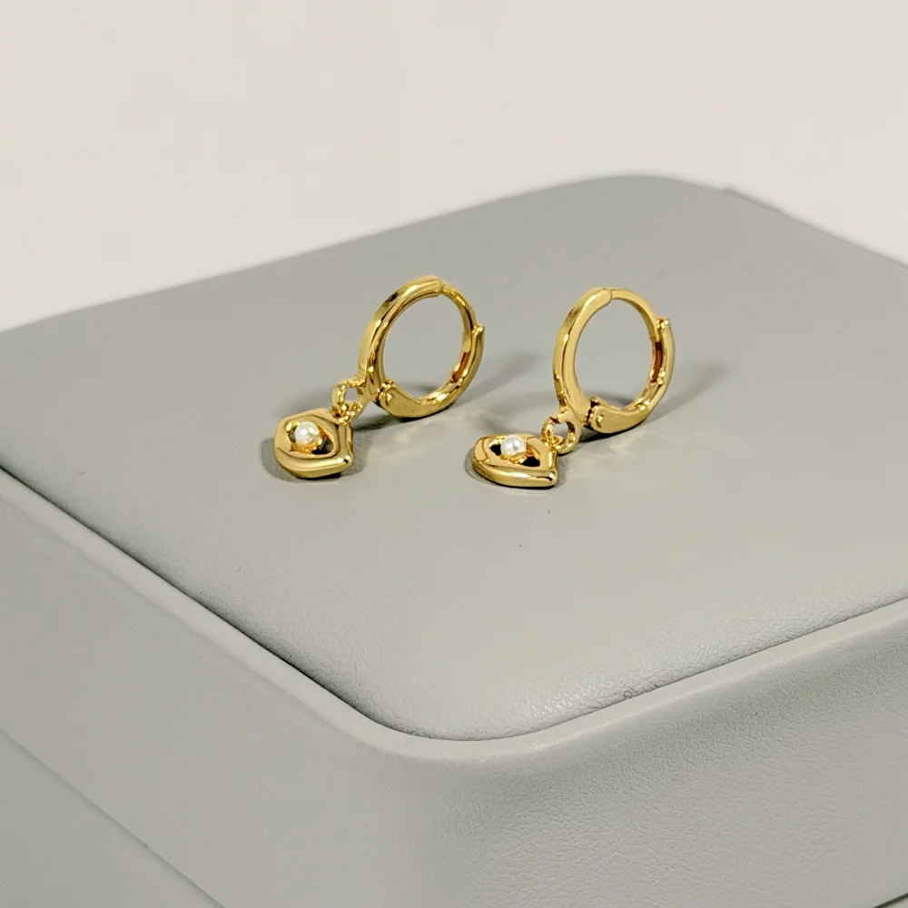 Aretes Huggie Corazón Perla Dorado | Colección Chiuso | Oro Laminado 18K