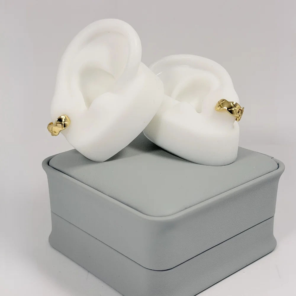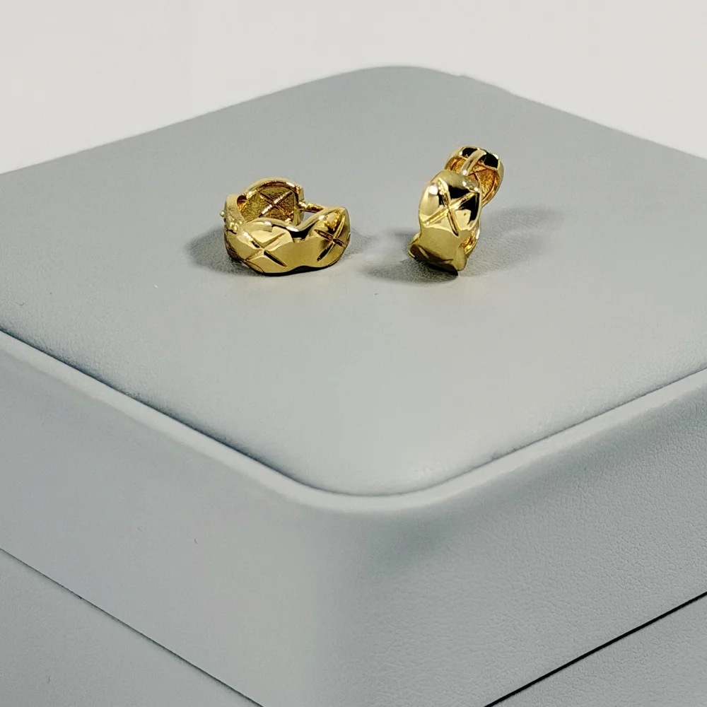 Aretes Huggie Mini Abombado Acolchado Dorado en Oro Laminado 18K | Colección Chiuso | Dorado con Textura Acolchada en Relieve