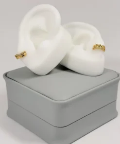Aretes Huggie Mini Acolchado Circones Blancos Dorado en Oro Laminado 18K | Colección Chiuso | Dorado con Textura Acolchada y Circones