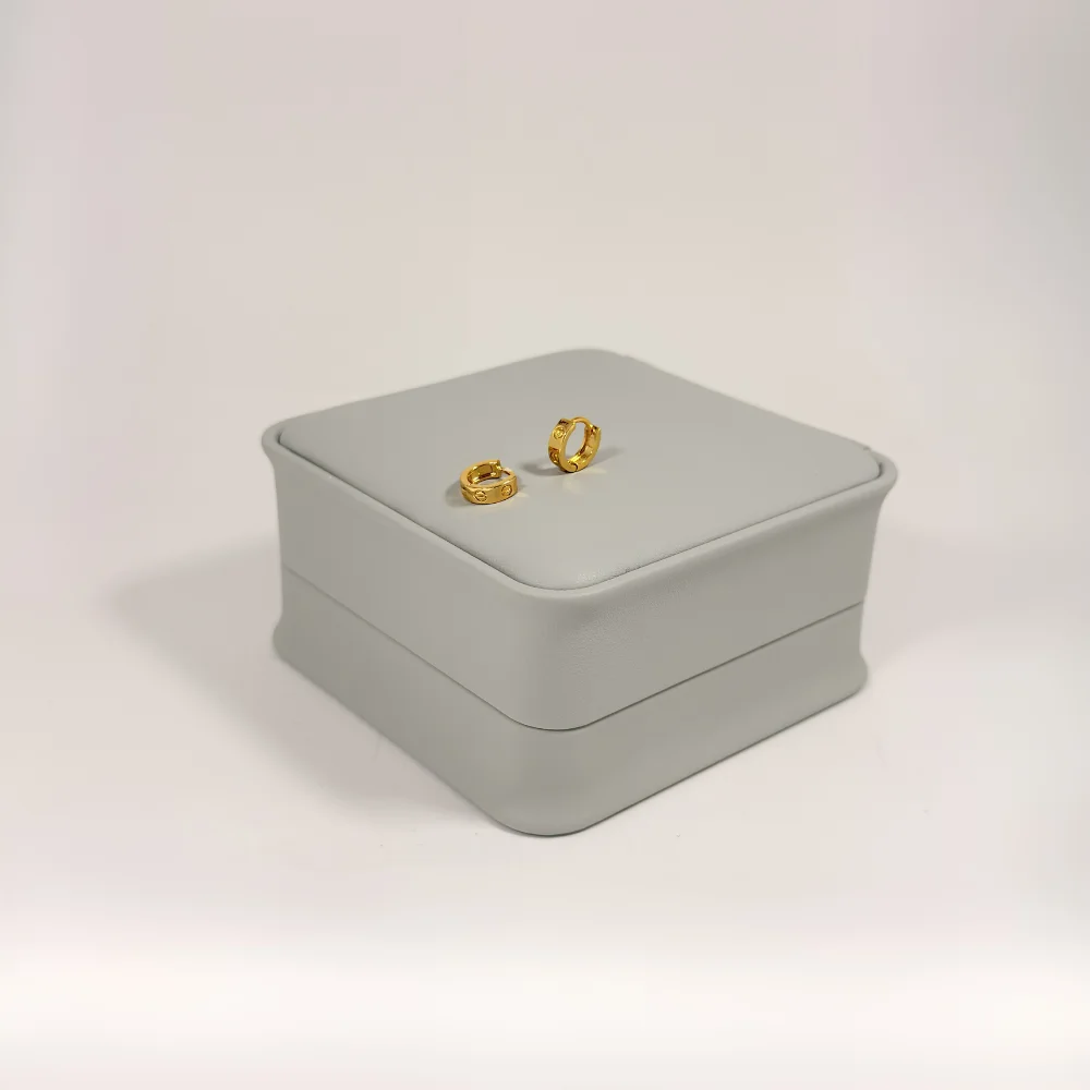 Aretes Huggie Mini Tornillos Liso Dorado en Oro Laminado 18K | Colección Chiuso | Dorado con Detalles de Tornillos