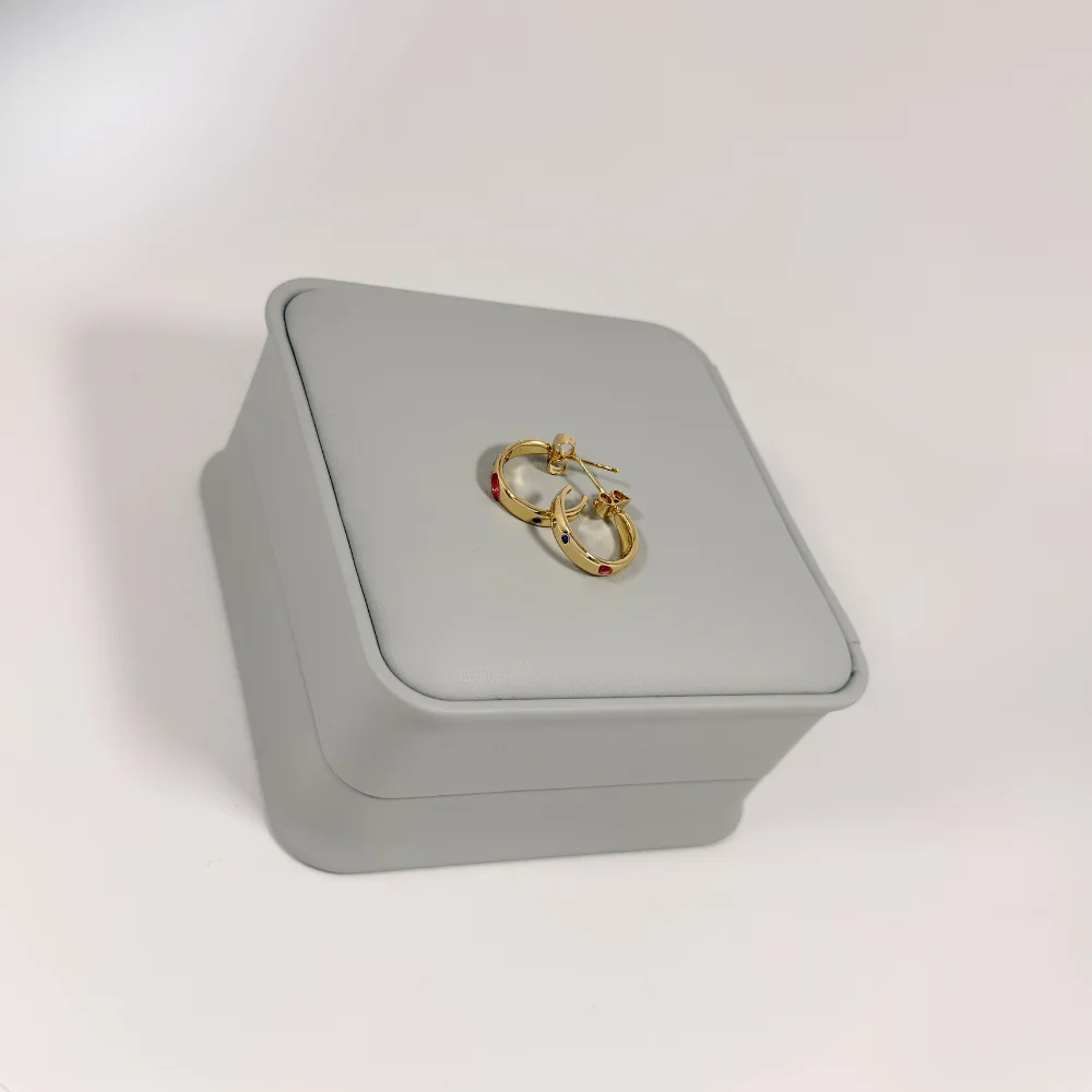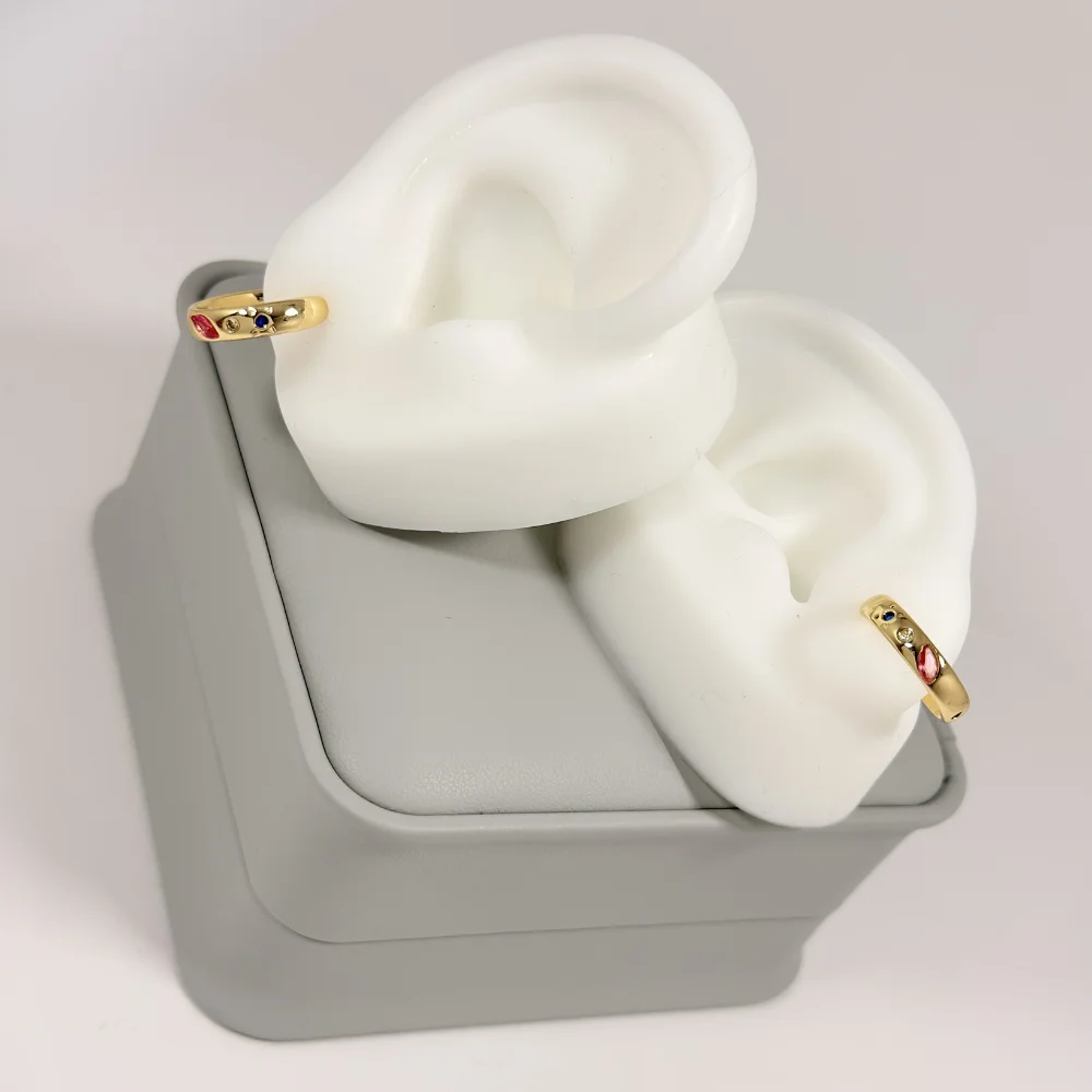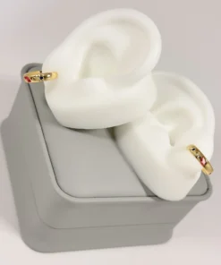 Aretes Huggie Piedras Multicolor Dorado en Oro Laminado 18K | Colección Essenza | Dorado con Piedras Roja, Azul y Cristal