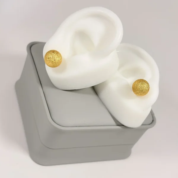 Aretes Topo Balín Diamantado Dorado en Oro Laminado 18K | Colección Essenza | Dorado