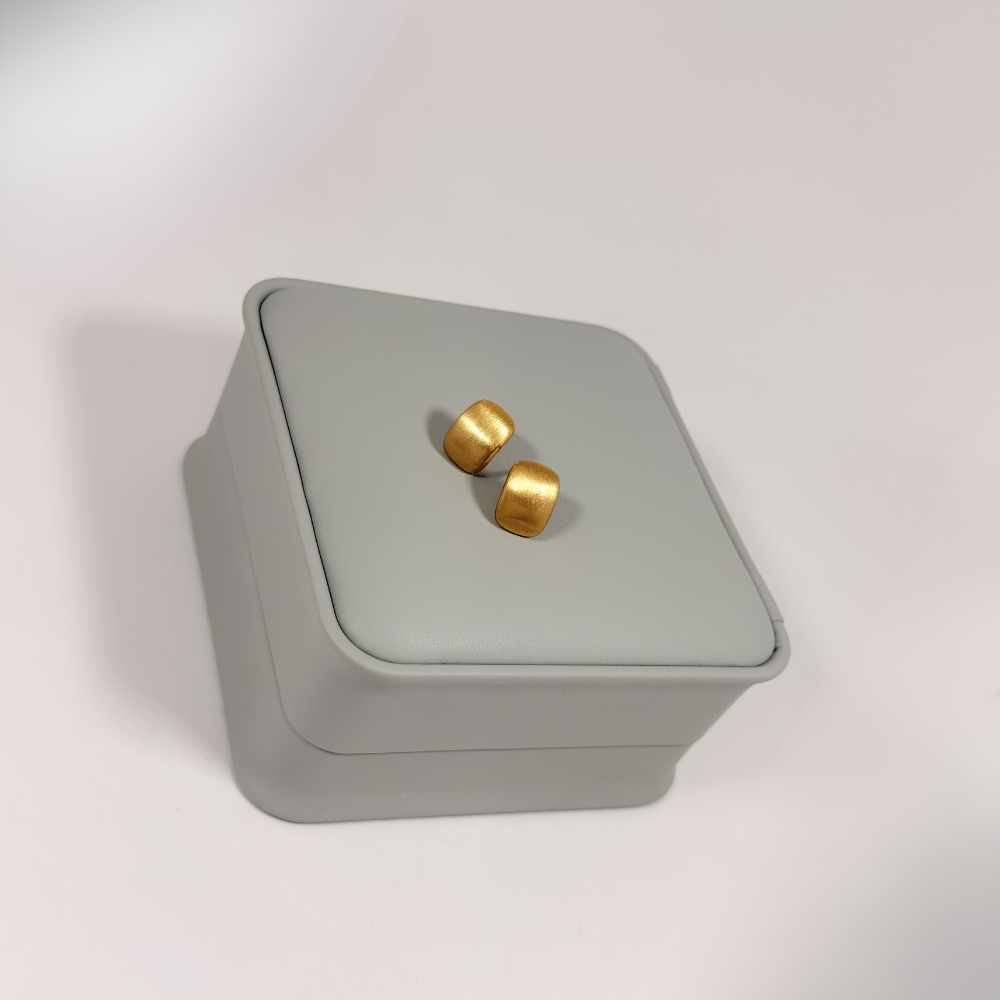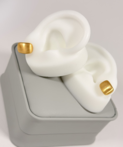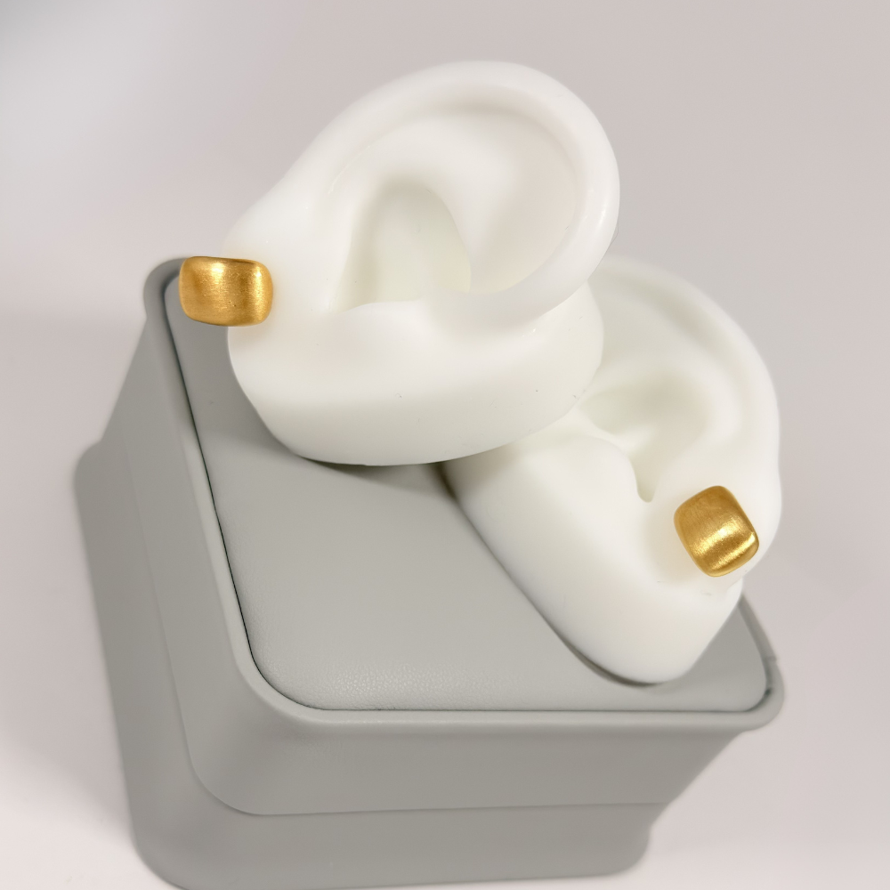 Aretes Topo Cuadrado Satinado Dorado en Oro Laminado 18K | Colección Essenza | Dorado Mate Satinado