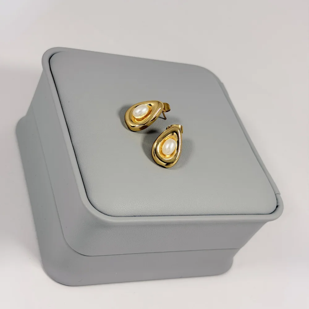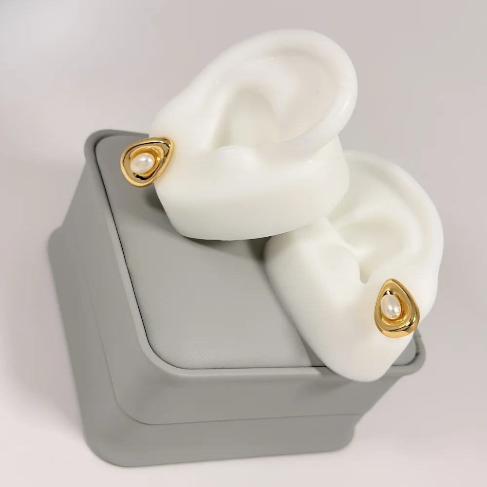 Los Aretes Topo Gota Perla Dorado de nuestra Colección Essenza están elaborados en oro laminado 18K garantizado. Su diseño en forma de gota orgánica con acabado dorado espejo envuelve una delicada perla central que aporta luminosidad y sofisticación. La combinación atemporal de oro y perla crea una pieza que trasciende tendencias — elegante para una reunión de trabajo, perfecta para una cena y lo suficientemente versátil para tu día a día.