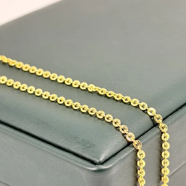 Cadena Moneditas Diamantadas Dorada en Oro Laminado 18K | Diseño elegante con eslabones tipo moneda.