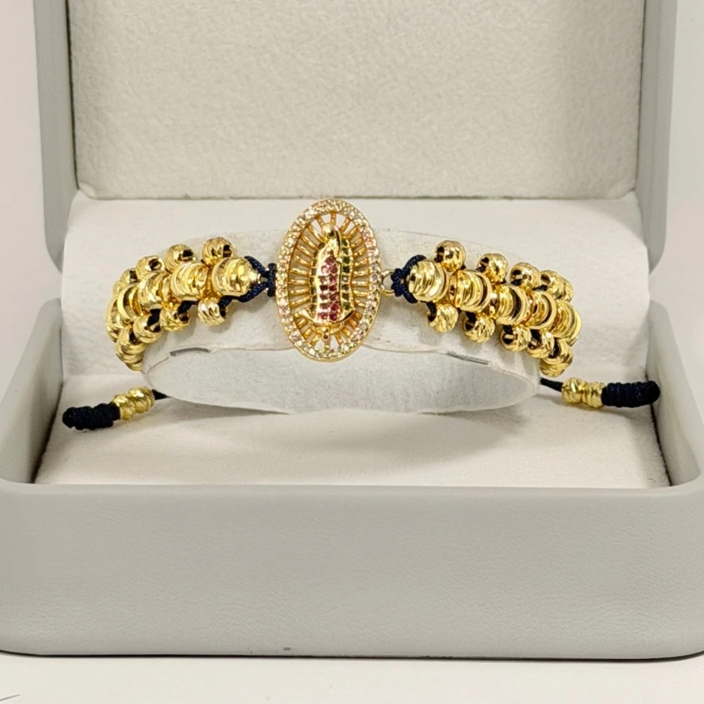 Pulsera Tejida Virgen de Guadalupe en Oro Laminado 18K | Color Azul Rey | 35% OFF