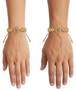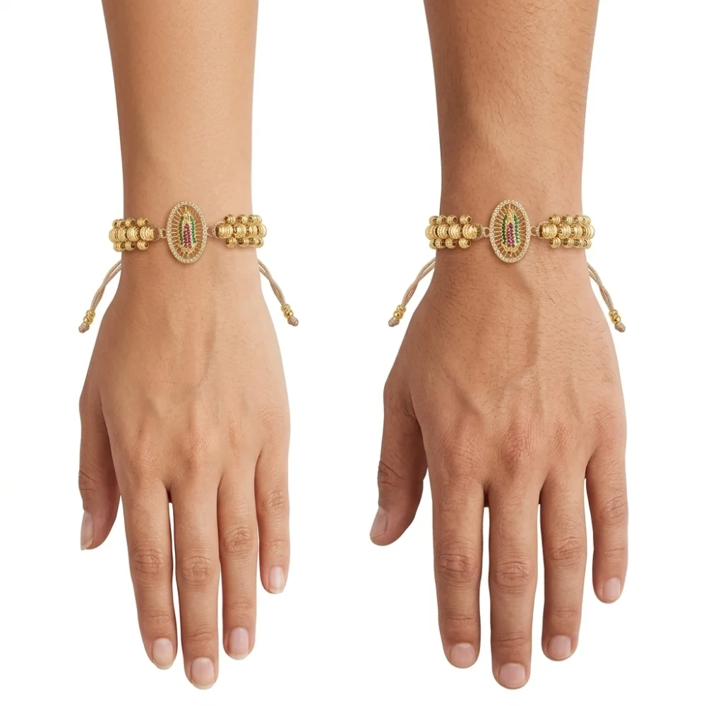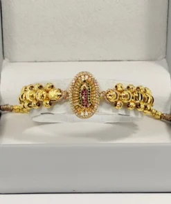 Pulsera Tejida Virgen de Guadalupe en Oro Laminado 18K | Color Beige Perlado | 35% OFF