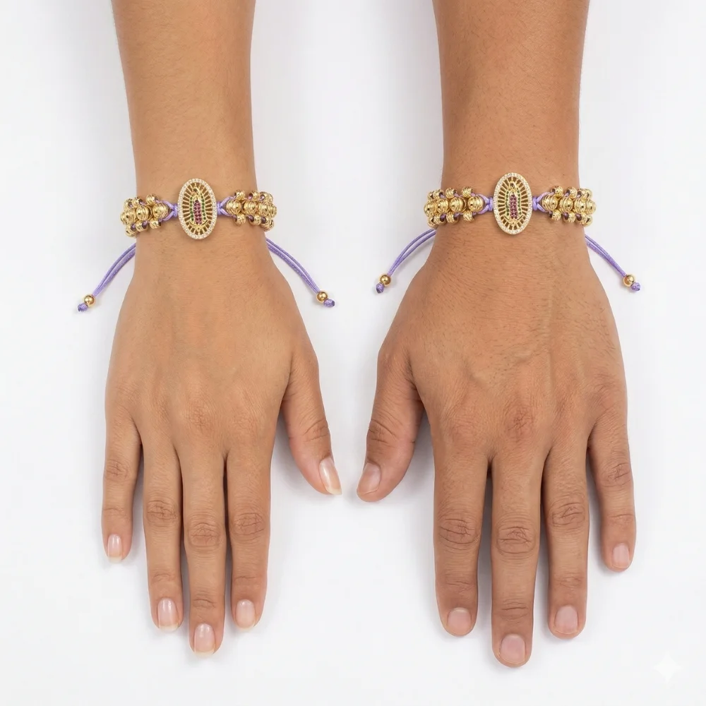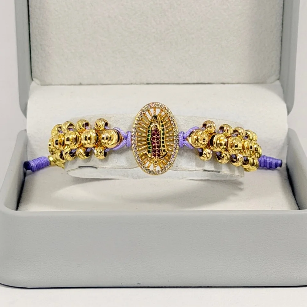Pulsera Tejida Virgen de Guadalupe en Oro Laminado 18K | Color Lila | 35% OFF