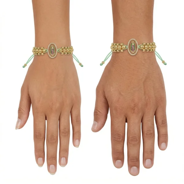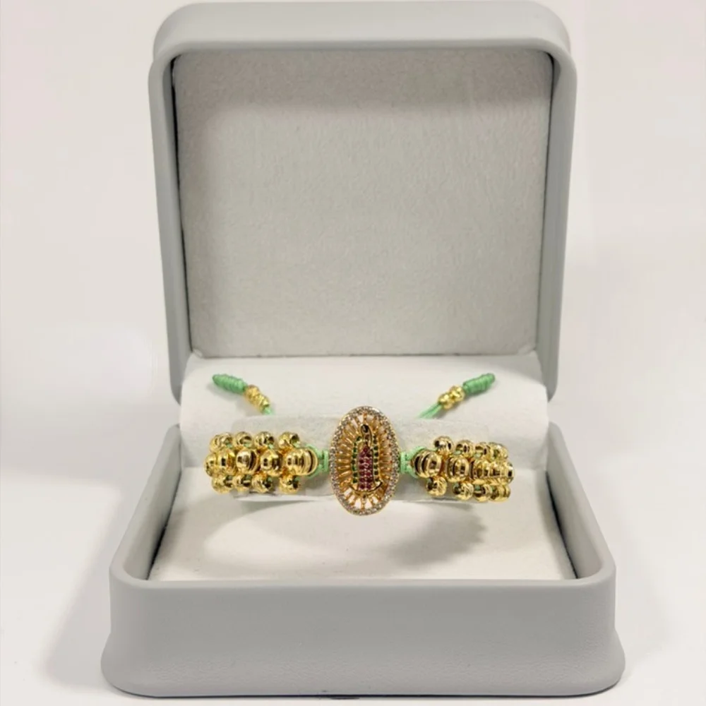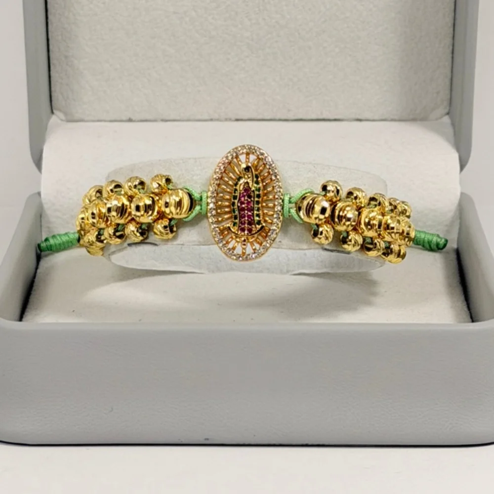 Pulsera Tejida Virgen de Guadalupe en Oro Laminado 18K | Color Verde Menta | 35% OFF