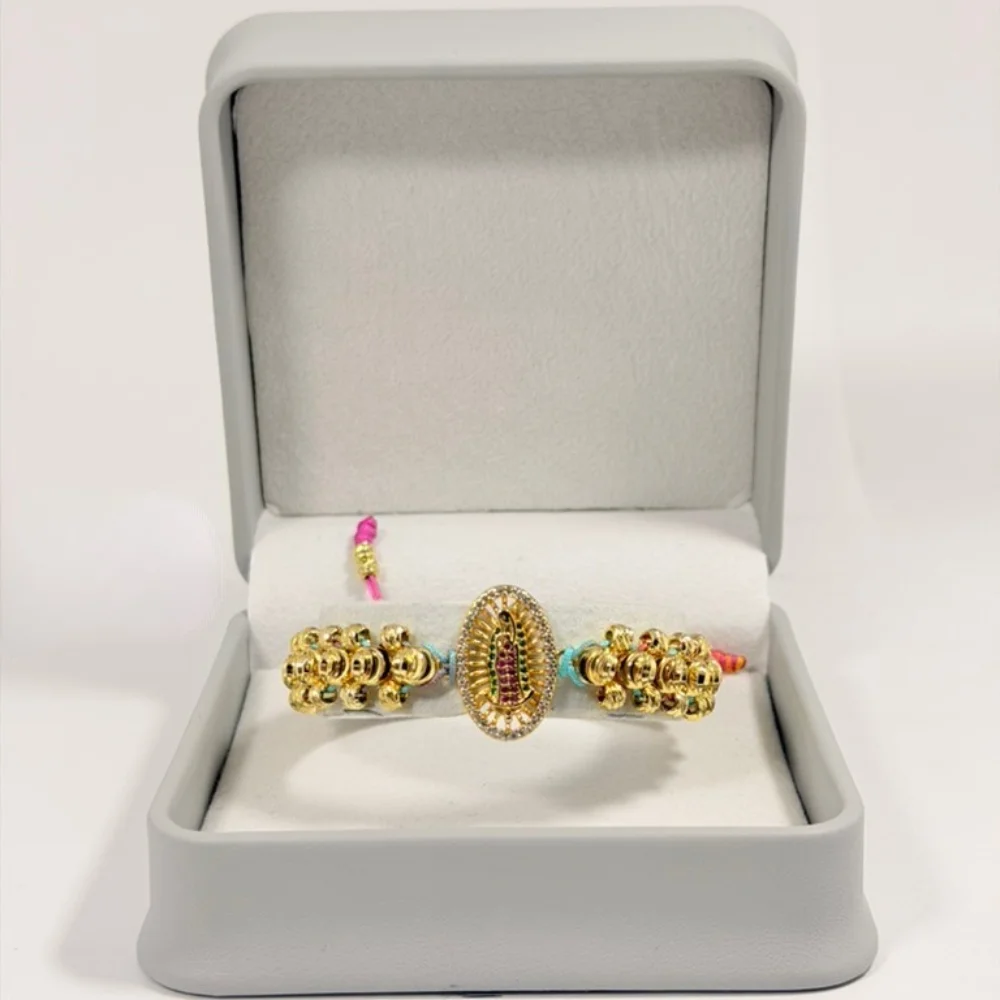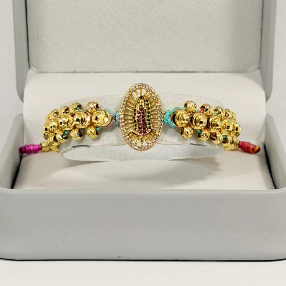 Pulsera Tejida | Virgen de Guadalupe | Oro Laminado 18K | Multicolor.