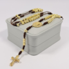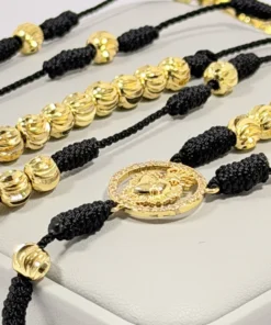 Rosario Negro Tejido a Mano con Balines de 6mm en Oro Laminado 18K.