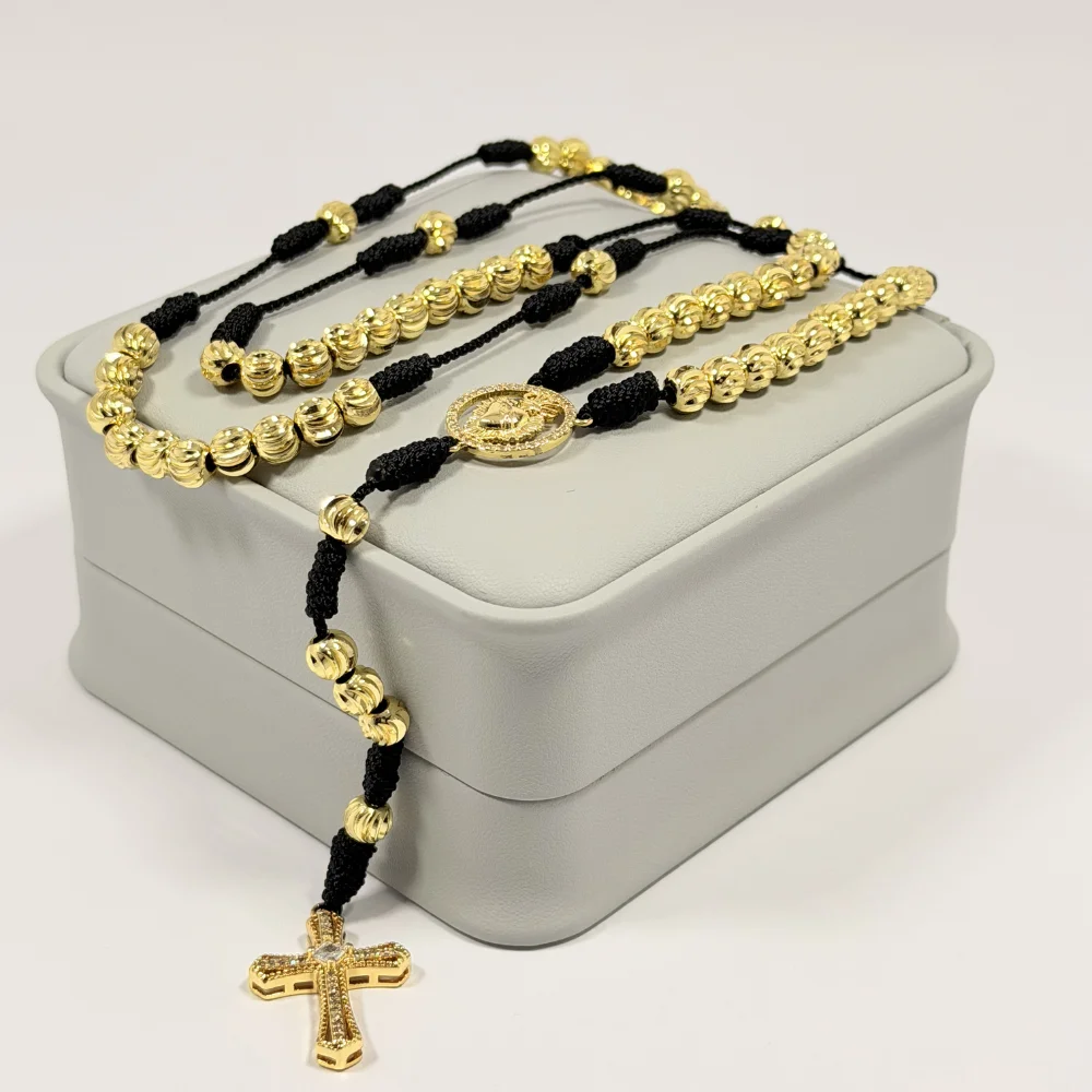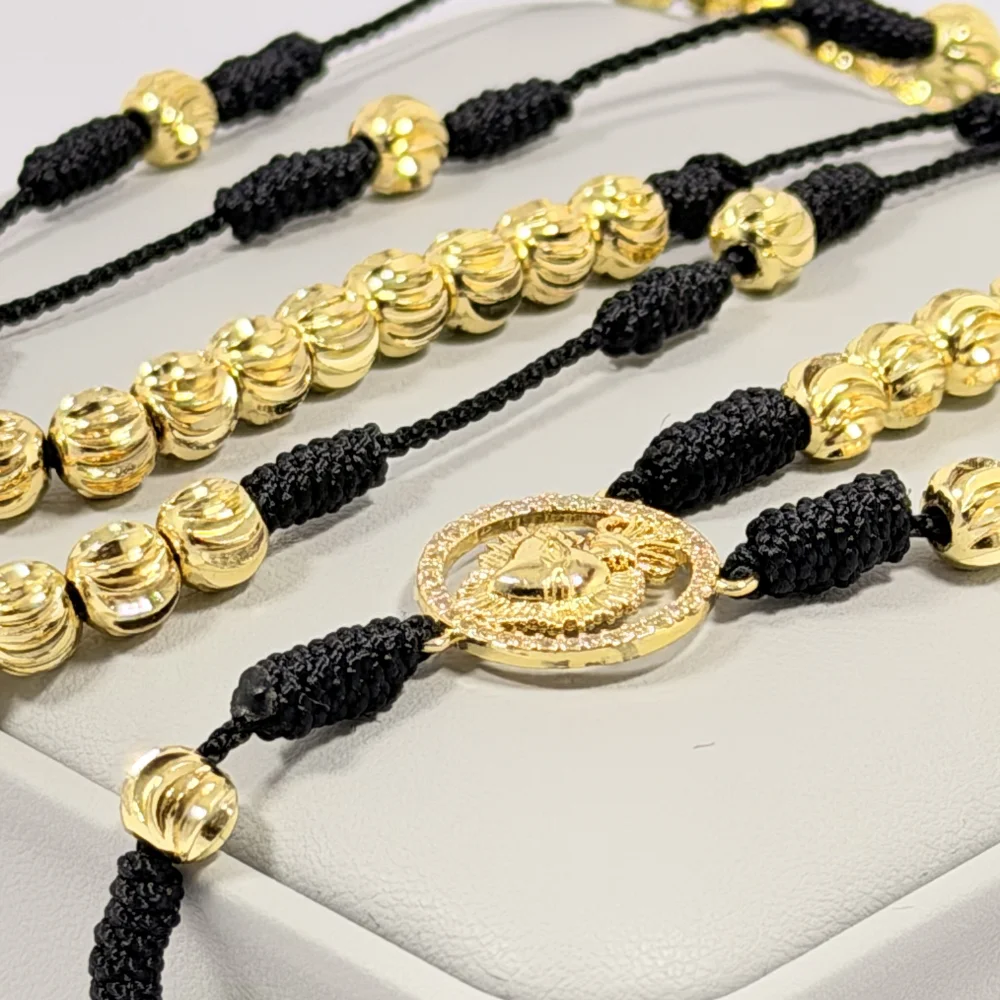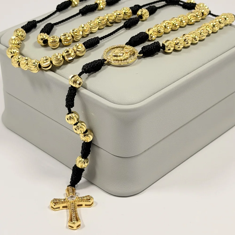 Rosario Negro Tejido a Mano Balines 6mm | Oro Laminado 18K